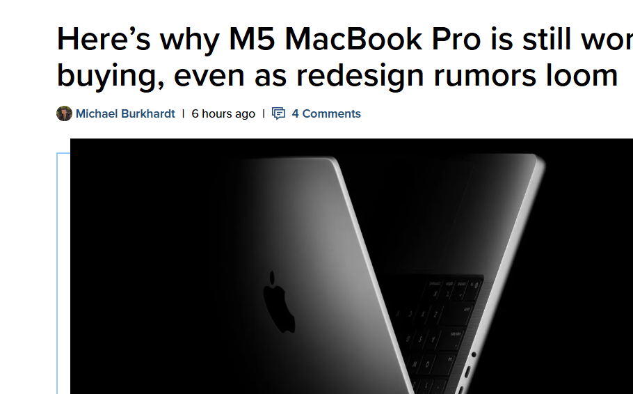 对于预算有限、需要优于MacBook Air的性能和屏幕,又无需高端Pro芯片的用户而言,M5 MacBook Pro或仍是未来几年的最优选择。(旺旺)